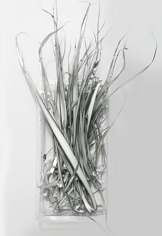 A l’inverse de la nature morte traditionnelle, ici, les matières sont en contradiction et se retrouvent en une harmonieuse lutte de sens.
